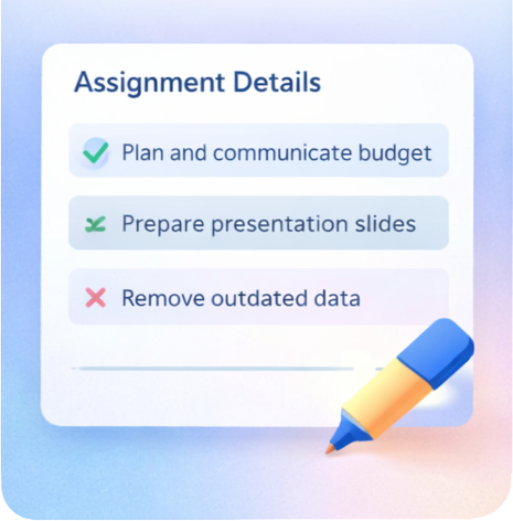 Our AI analyzes the assignment, identifies key requirements, deadlines, and responsibilities, and removes unnecessary details so nothing important gets missed.
